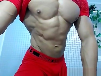 Unbelievable uber-sexy twunk with stiff meaty muscles solo milking fun